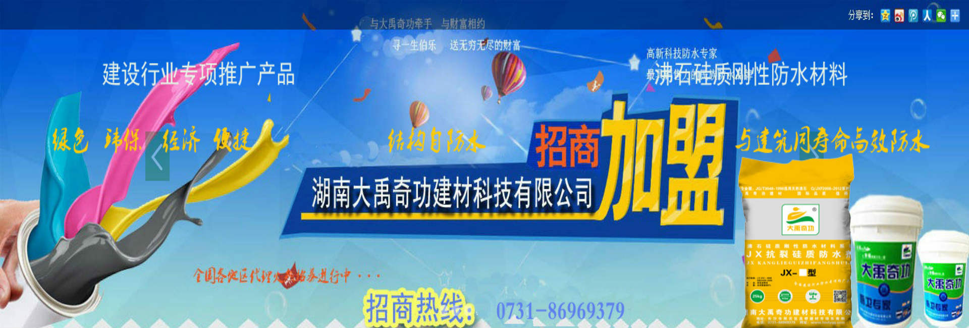 湖南大禹奇功建材科技有限公司,是應現代科技和人們品質生活的需要成立的。經研發、生產、銷售新型環保建筑材料、防水材料、砼外加劑。與工程施工為一體的,現代化綜合型建材高科技企業,其前身為海外注冊的“美亞集團香港國際企業有限公司” 公司技術力量雄厚,擁有專門的科研開發、設計人員和海外研發基地,并具有一支技術過硬的專業施工隊伍和完善的質量管理體系,自主研發的“大禹奇功”“大禹圣君”“多美亞”品牌產品,引進海外先進技術、采用中德合資原材料、美國助劑,其質量和技術得到了充分保障。最近公司研發團隊在高分子卷材環保、耐侯,及環保型合成高分子涂料的研發取得了新的成就,研發的適應天面、平臺等外露場所的抗紫外線、環保型露天防水涂料,和新型高分子自粘卷材已申請國家專利。...